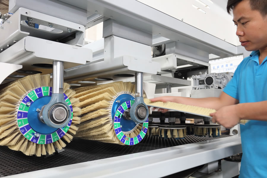 ⑨采用圓盤砂、多輥、螺旋輥組合,不僅使打磨砂光變得輕松、高效、優質,并幫助許多工廠大幅度降低勞動人手,提高生產效率和生產質量,同時降低人員與磨料成本,提高利潤空間